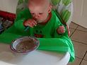 This 'exciting adventure' became the continuous bane of my life! I reluctantly gave him freedom over the spoon, taking back control when it all got too messy to reduce the cleaning after. We tried various bibs and despite some being fairly effective in keeping tops clean(ish) they didn't account for food falling between the legs, smothered on his trousers and all over the chair. In the end I gave up on bibs altogether as it only resulted in one extra thing to clean!